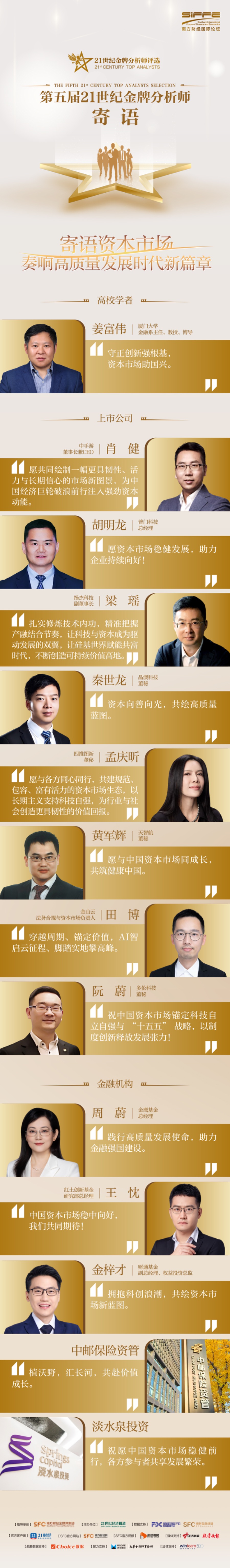 经过严谨有序的各个环节,最终的评选结果将于2025年12月6日下午,在“南方财经国际论坛·证券业年会暨2025年21世纪金师颁奖典礼”上隆重揭晓。在榜单发布前夕,我们特别汇集了来自部分评委们的真知灼见与殷切寄语,共同期待这场资本市场研究力量的集中展现。