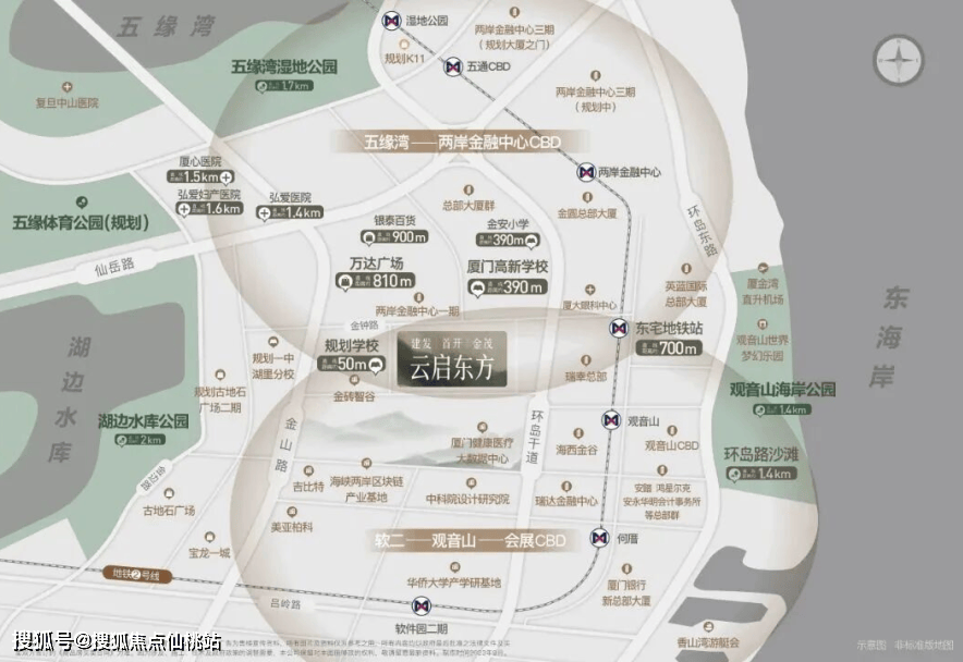 位于金砖数字工业智谷二期东侧,五通高端商务区一期南侧,五通高端商务区二期和东宅TOD西侧,思明开元创新社区、观音山国际营运中心、会展CBD也都在2公里范围圈内,满载高能级产业,荟萃岛芯精华配套。